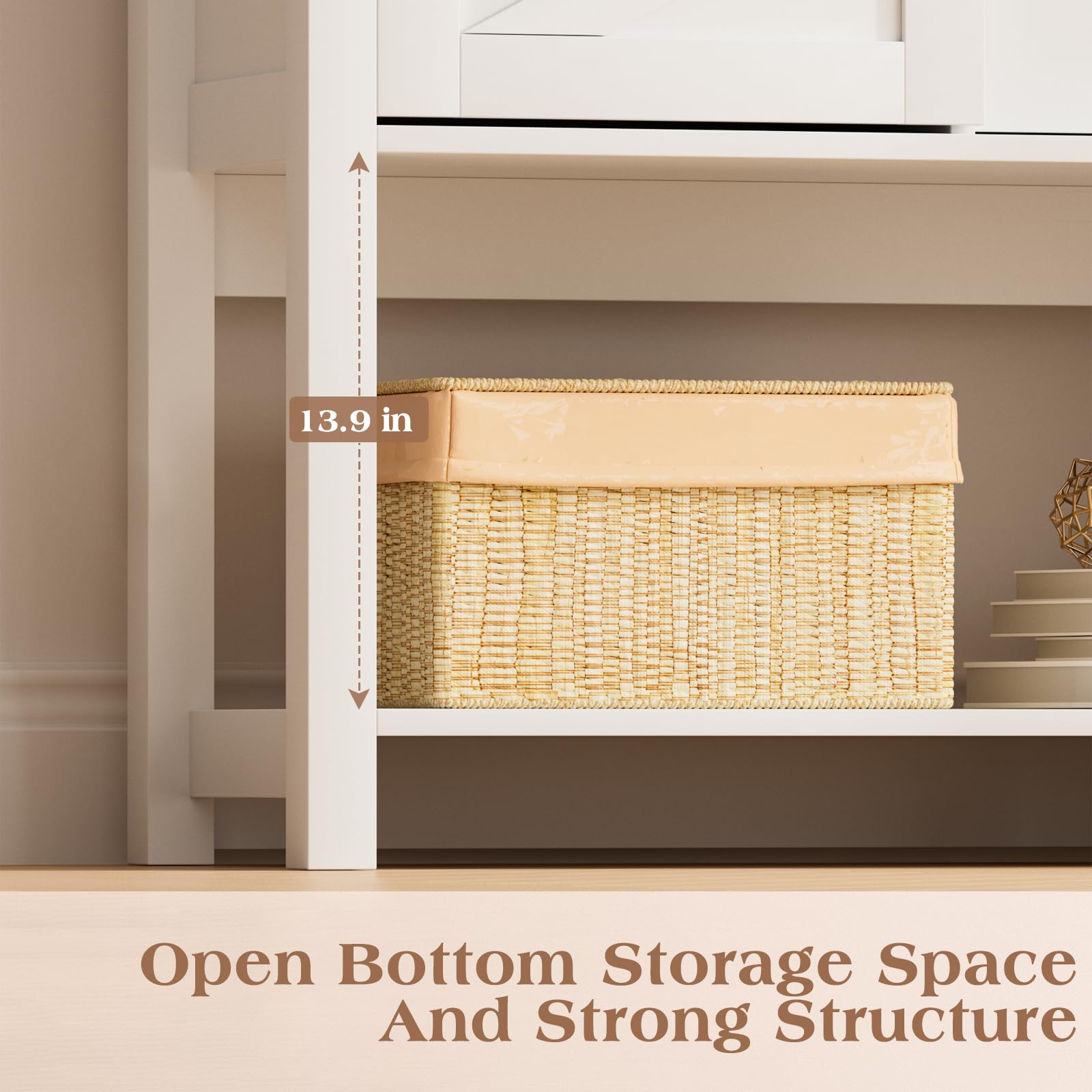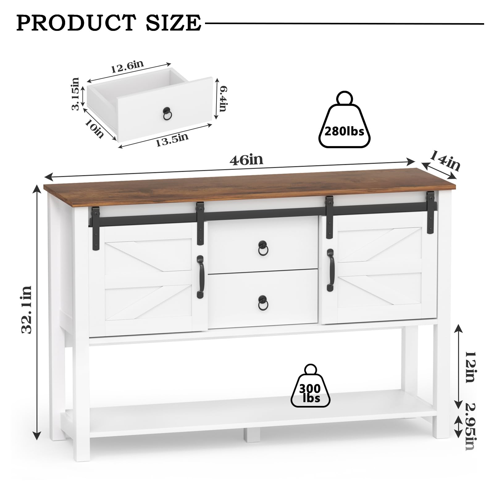• 【Sturdy & Durable】The console table is crafted from particle board and metal hardware. Unlike similar storage cabinets, we have added two cross beams and a central support leg to the bottom panel. The reinforced, sturdy frame allows this farmhouse entry table to support up to 280 pounds.