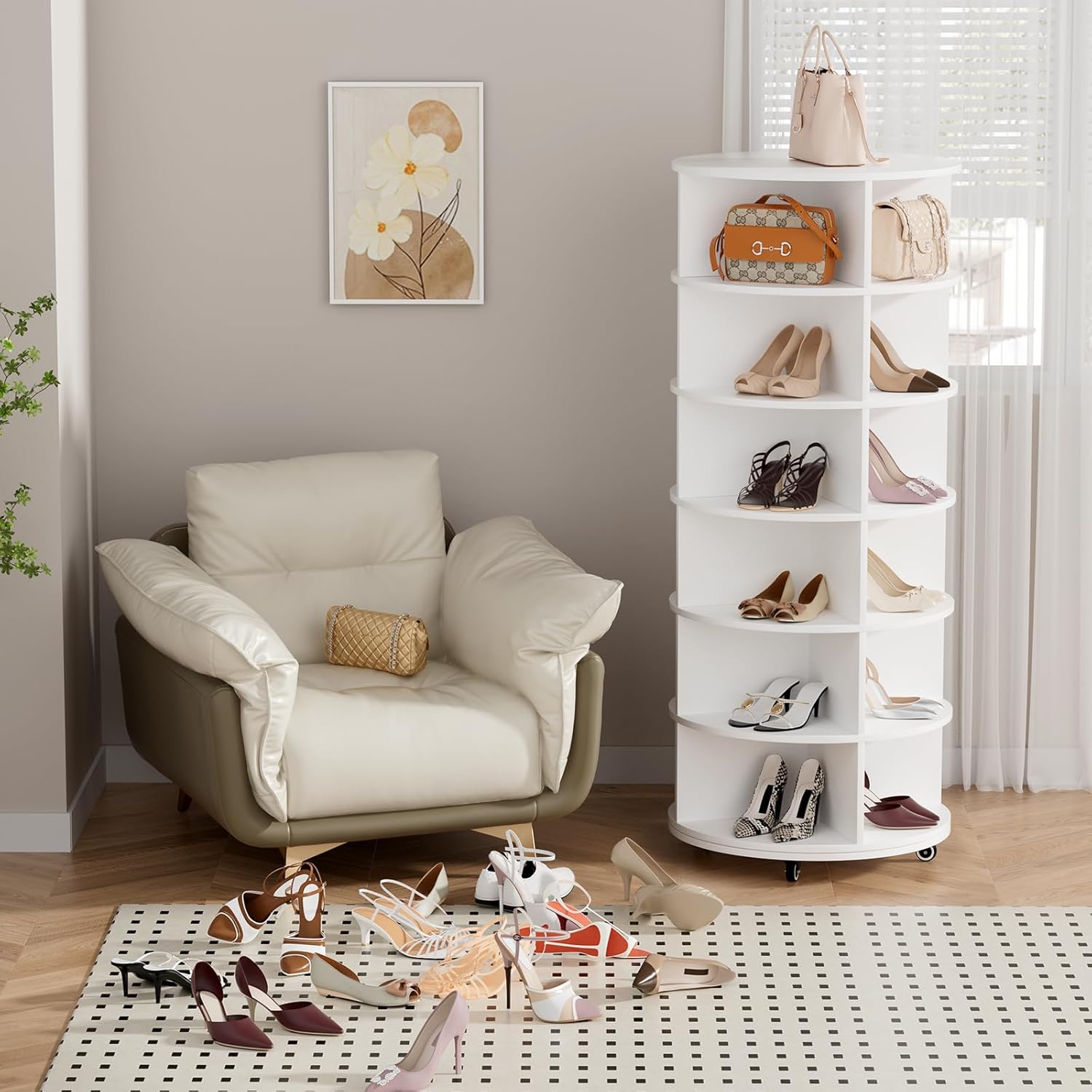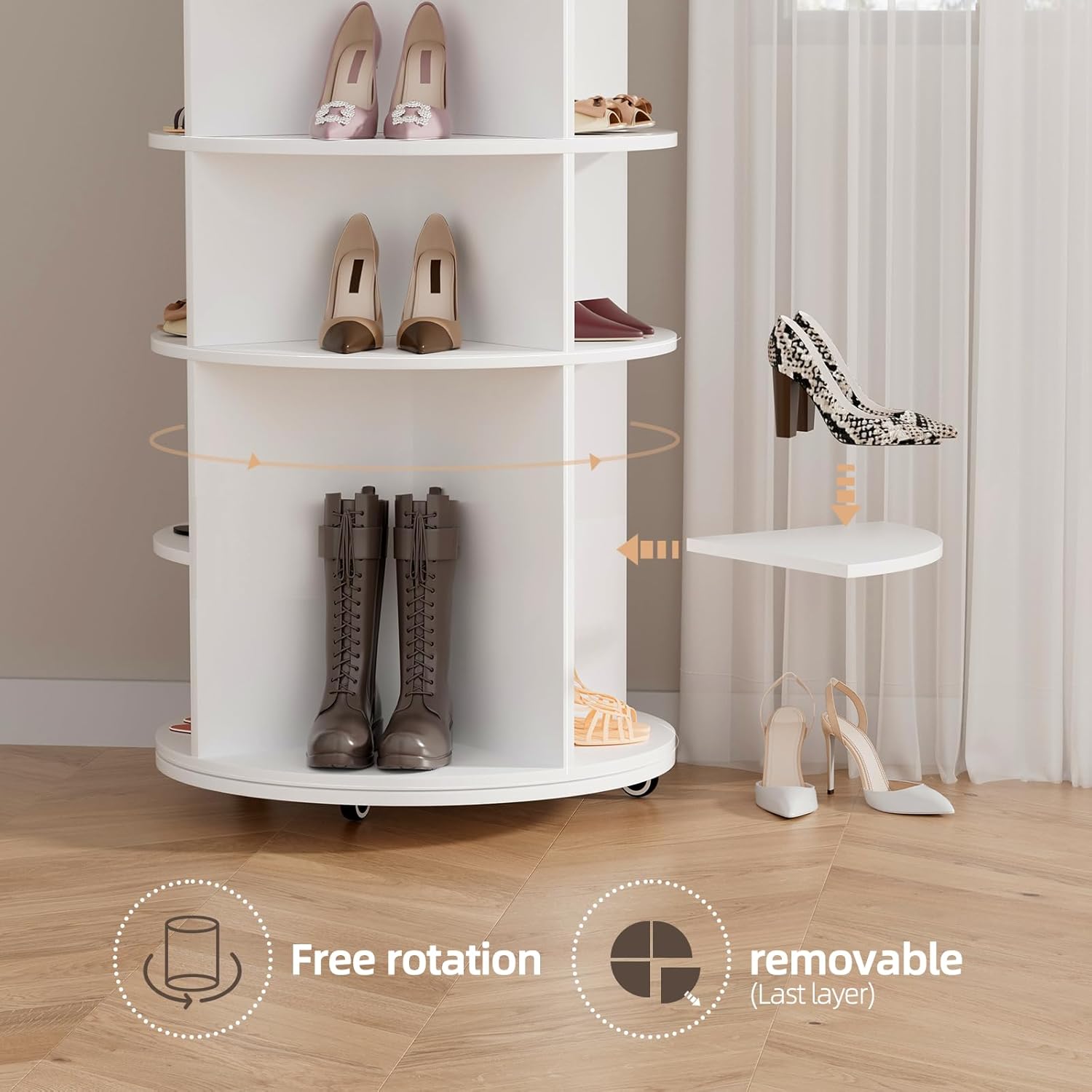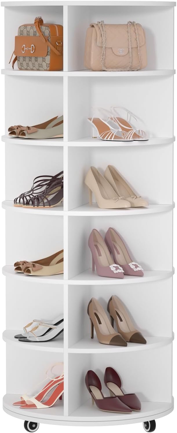 Spinning design: The 360-degree rotating shoe rack can display your shoes clearly and beautiful. This shoe organizer can also help you save a lot of time searching for shoes. You can see the pair of shoes you're looking for at a glance with this shoe storage