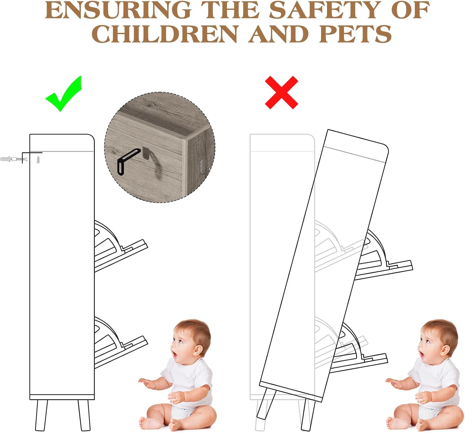 【Safe and Sturdy Design】The ultra - thin shoe cabinet takes safety as the top priority. It has a built - in anti - tipping wall - mounted device to ensure the safety of children and pets. Supported by high - quality medium - density fiberboard, it offers strong bearing capacity. The shoe cabinet has extra storage space where items such as wallets and keys can be placed, providing more options for item storage
