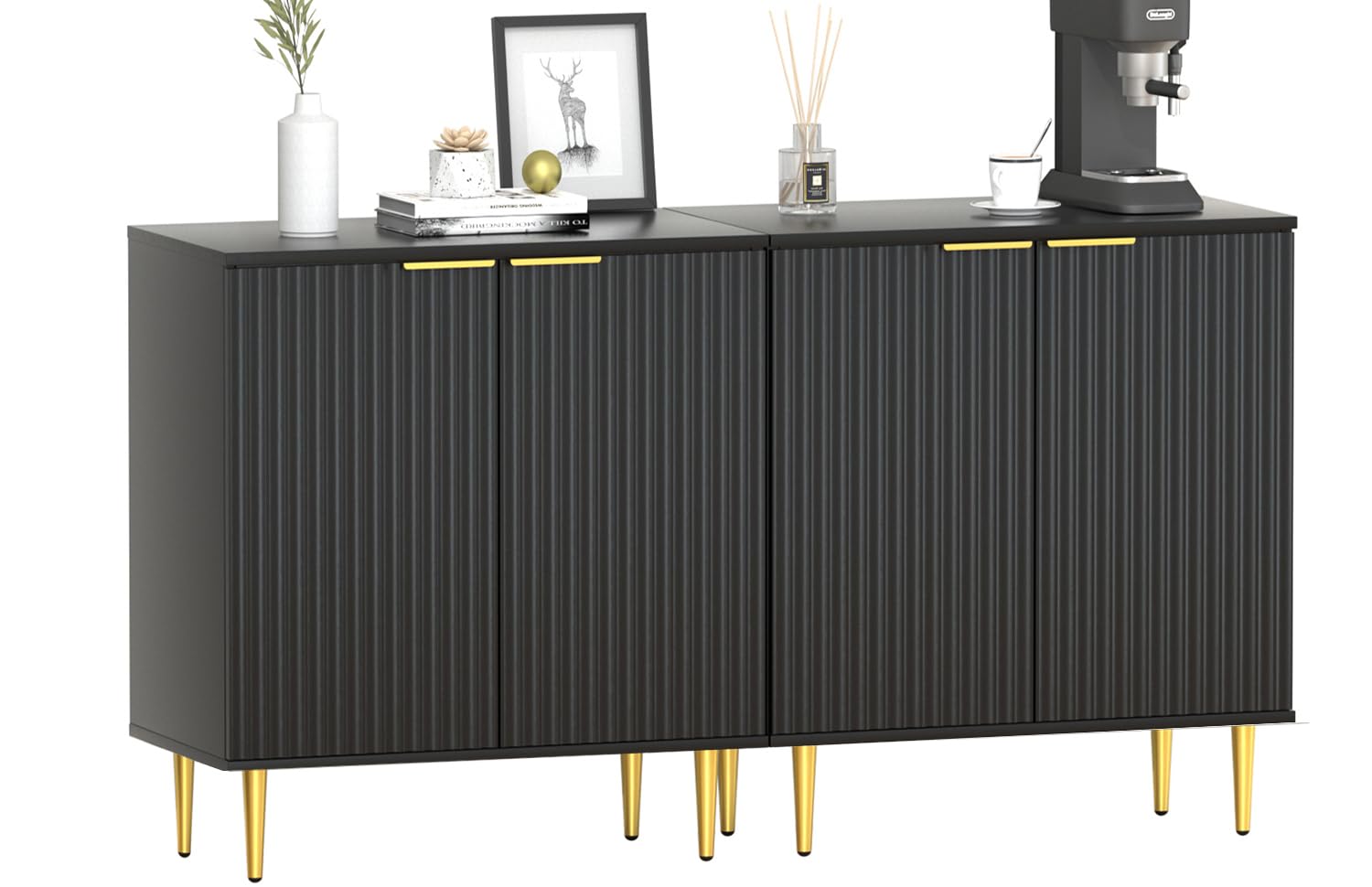 【Fluted Waveform Doors】The fluted waveform design on the door panel is elegant and understated. Our black sideboard combines the features of gold metal legs and handles are in line with the characteristics of the light luxury style.
