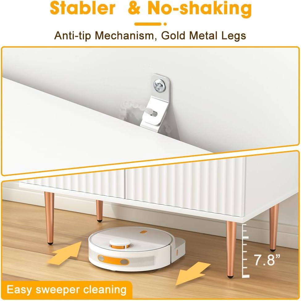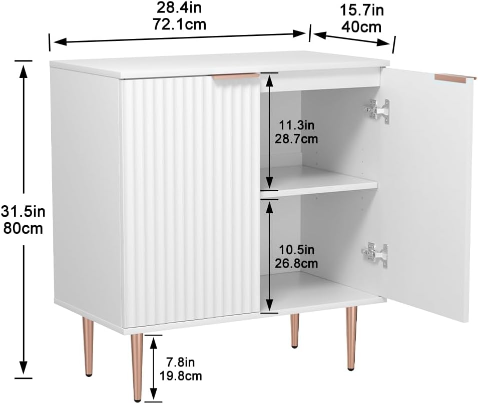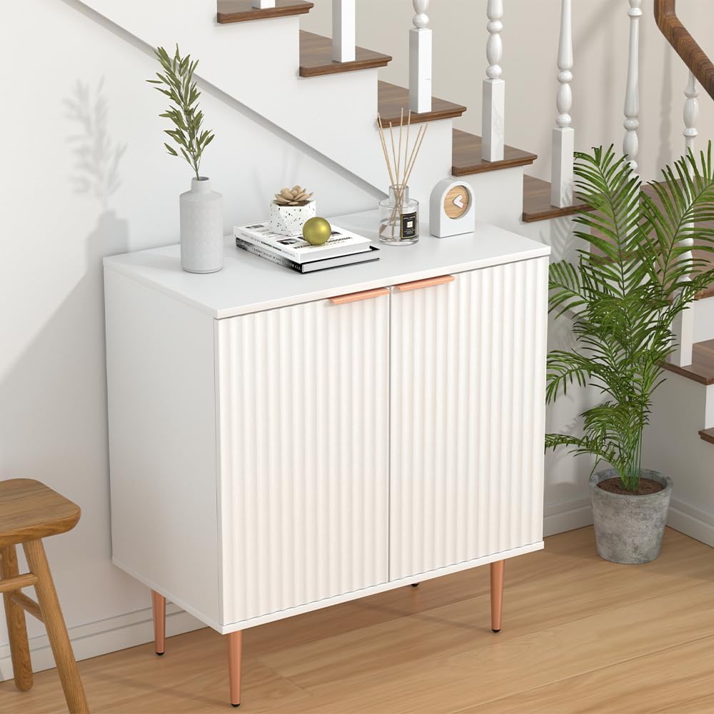 【Modern & Luxury】The perfect combination of a white cabinet body and gold legs creates a sleek and stylish visual appeal. The fluted waveform design on the door panel is elegant and understated, adding a little spirits to the fluted cabinet, and seamlessly complements various interior decor styles.
