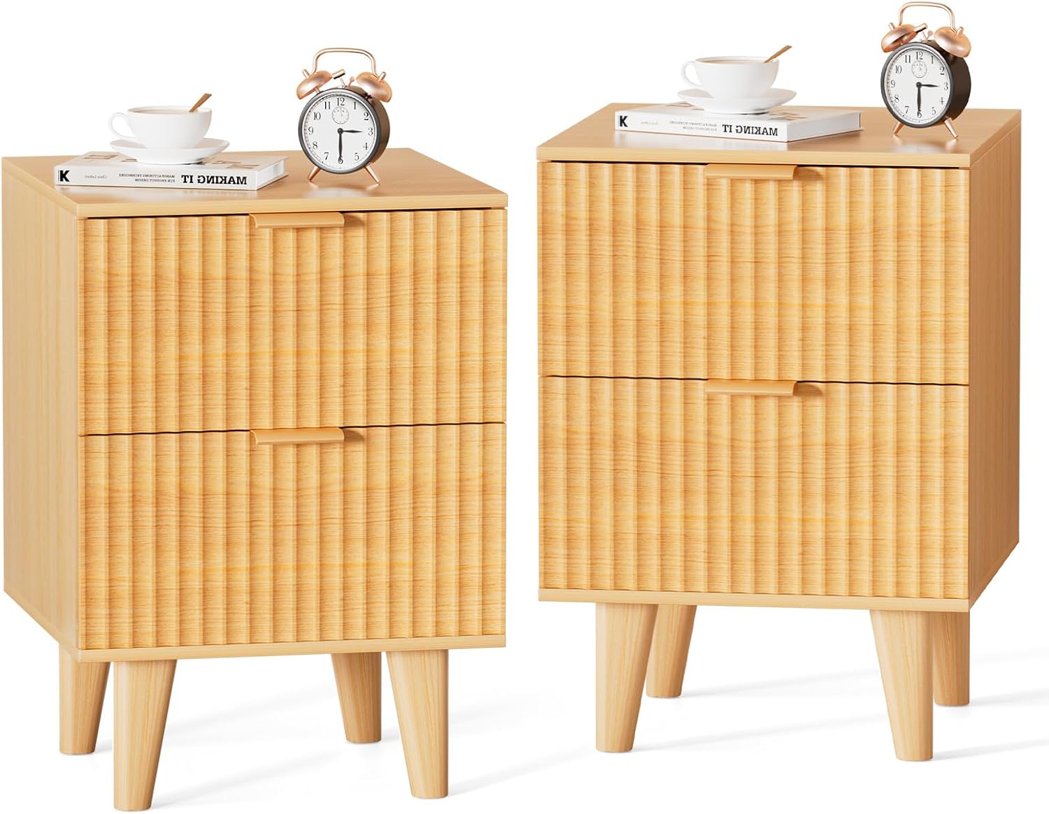 Fluted Modern Design: The drawer board of the end table is designed with a fluted pattern, and there are metal handles on top of the drawers, which makes the bedside table look simple and fashionable as a whole; suitable for any style of room, the wood end table measures 15.35 "L x 15.35 "W x 22.83 "H