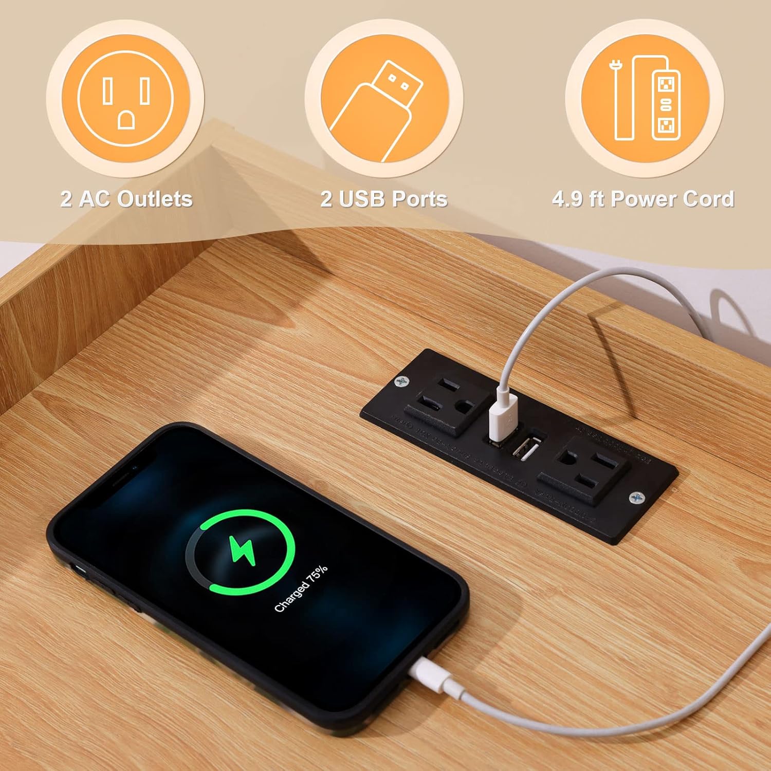 【NIGHTSTAND WITH POWER OUTLETS】: 2 standard plug & 2 USB ports allows you to charge mobile devices such as cell phone, tablet etc. The charging station also includes an on-off switch, which strengthens security.