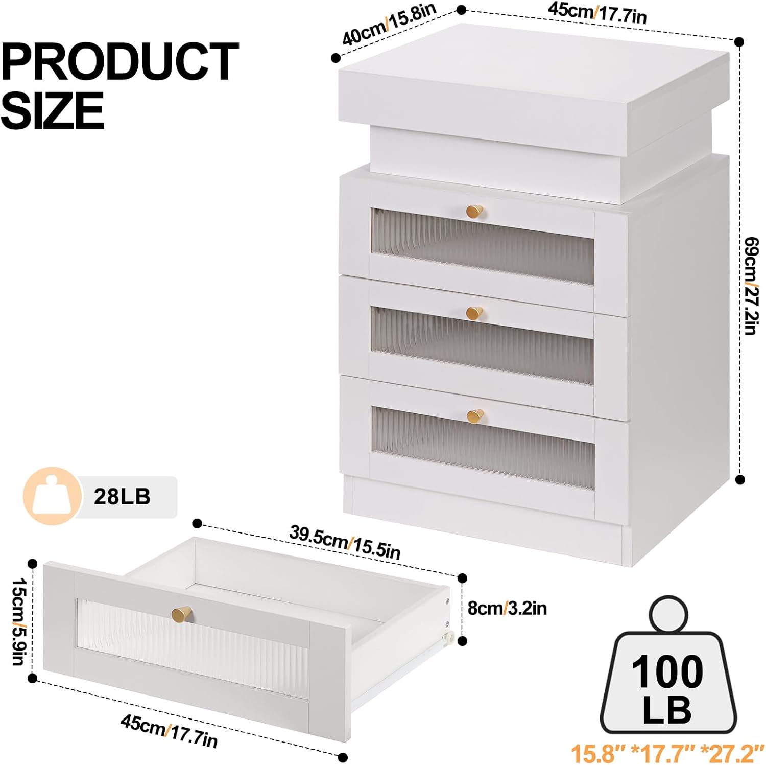 Modern Nightstand: Made of sturdy wood and acrylic board, the acrylic drawer makes the nightstand look more beautiful and is the finishing touch to the whole cabinet, perfect for use as bedside tables, storage cabinets and side tables, etc., which can be placed in any room to add highlights to the room